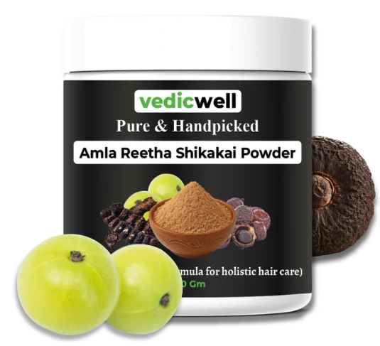 Ayurveda’s Answer to Shampoo – Amla Reetha Shikakai Powder for Growth & Shine (200g)